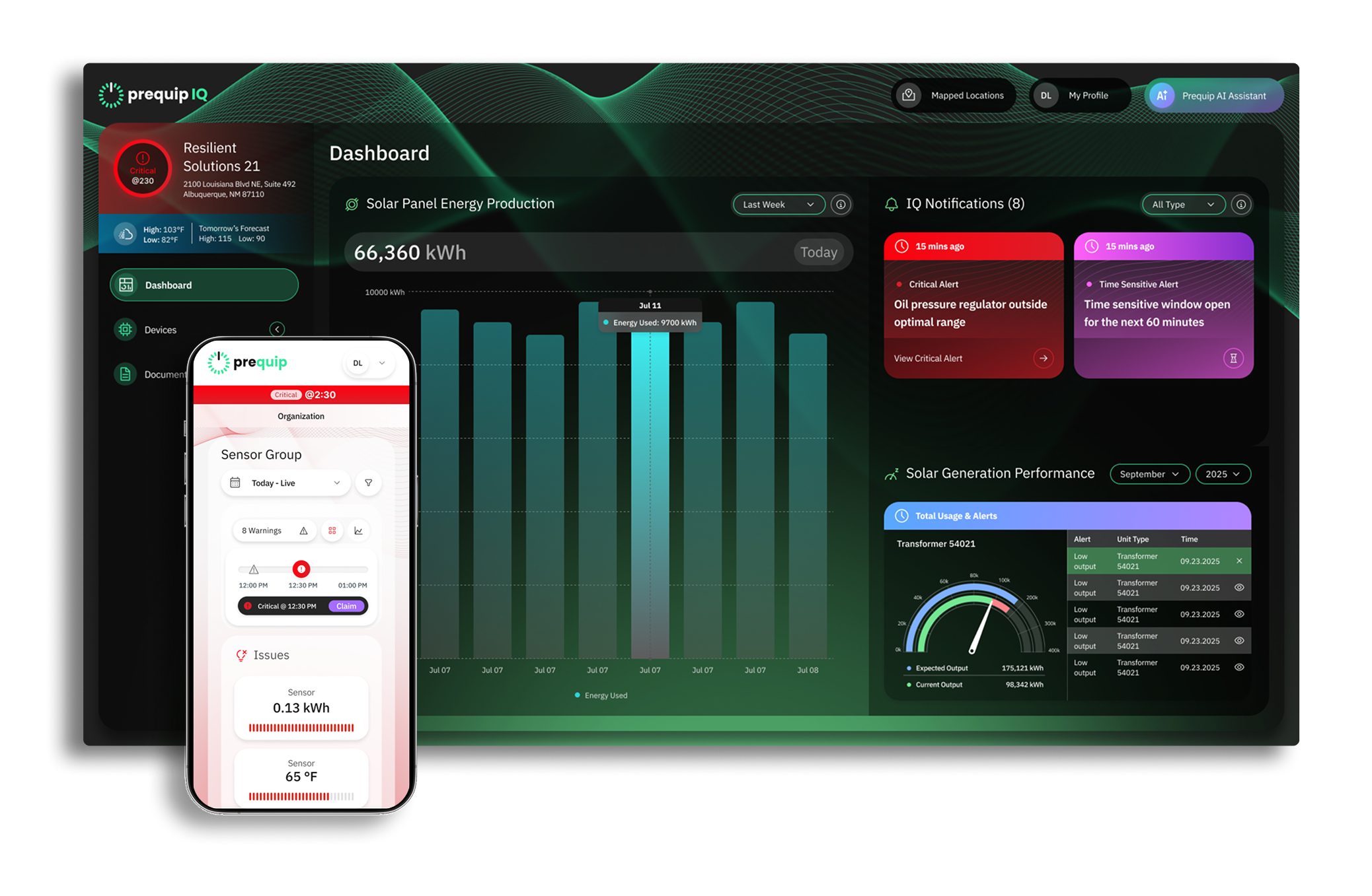 Imagine if your COO, sustainability leaders, facilities manager, and technicians could all access the same unified view. Prequip’s shared visibility eliminates information silos and ensures teams make decisions using accurate, real-time performance data.